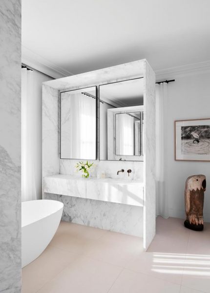 The bathroom of ‘Lena’, a project of William Smart from Smart Design Studio, took out Best Residential Bathroom Design. This marble ensuite is nothing short of theatrical and is the epitome of elegance. Smart placed freestanding marble boxes throughout to separate the bath, shower and toilet. As a result, different levels of light reach each ‘enclosure’ within the space.