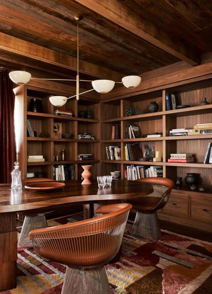 Our favourite design element is the use of reclaimed timber throughout. You’ll find it used for flooring, ceilings and custom cabinets – most impressively in the library. Contrasting polished concrete floors and other finishes with marble accents in the kitchen also add to the modern charm.